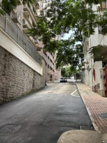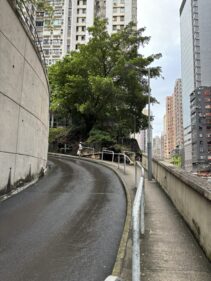 There is a mountain opposite Tin Hau Station. If you want to go up the mountain, you need to go through five turns, and all of them are very steep slopes.