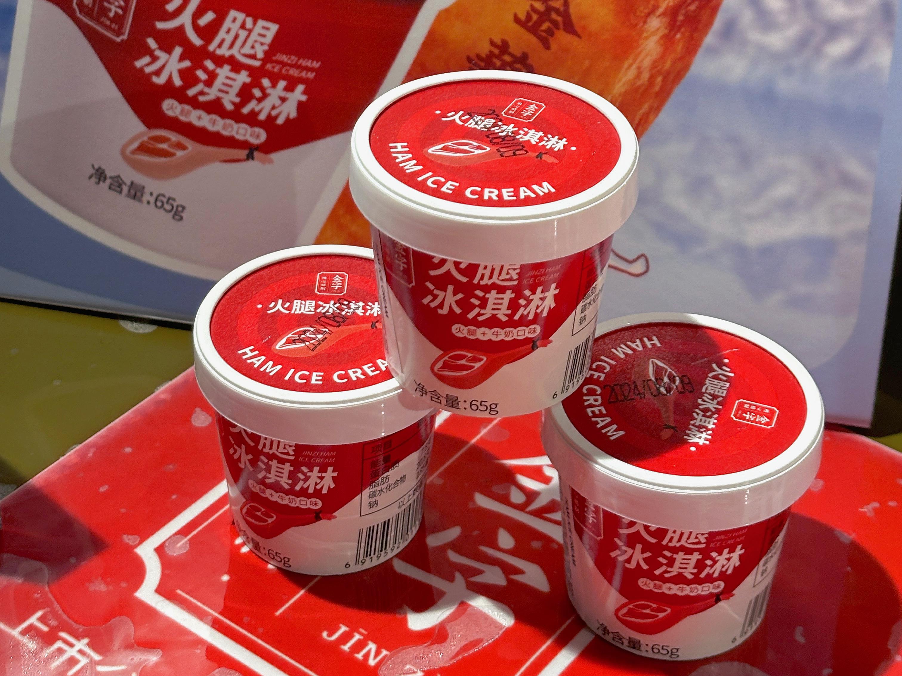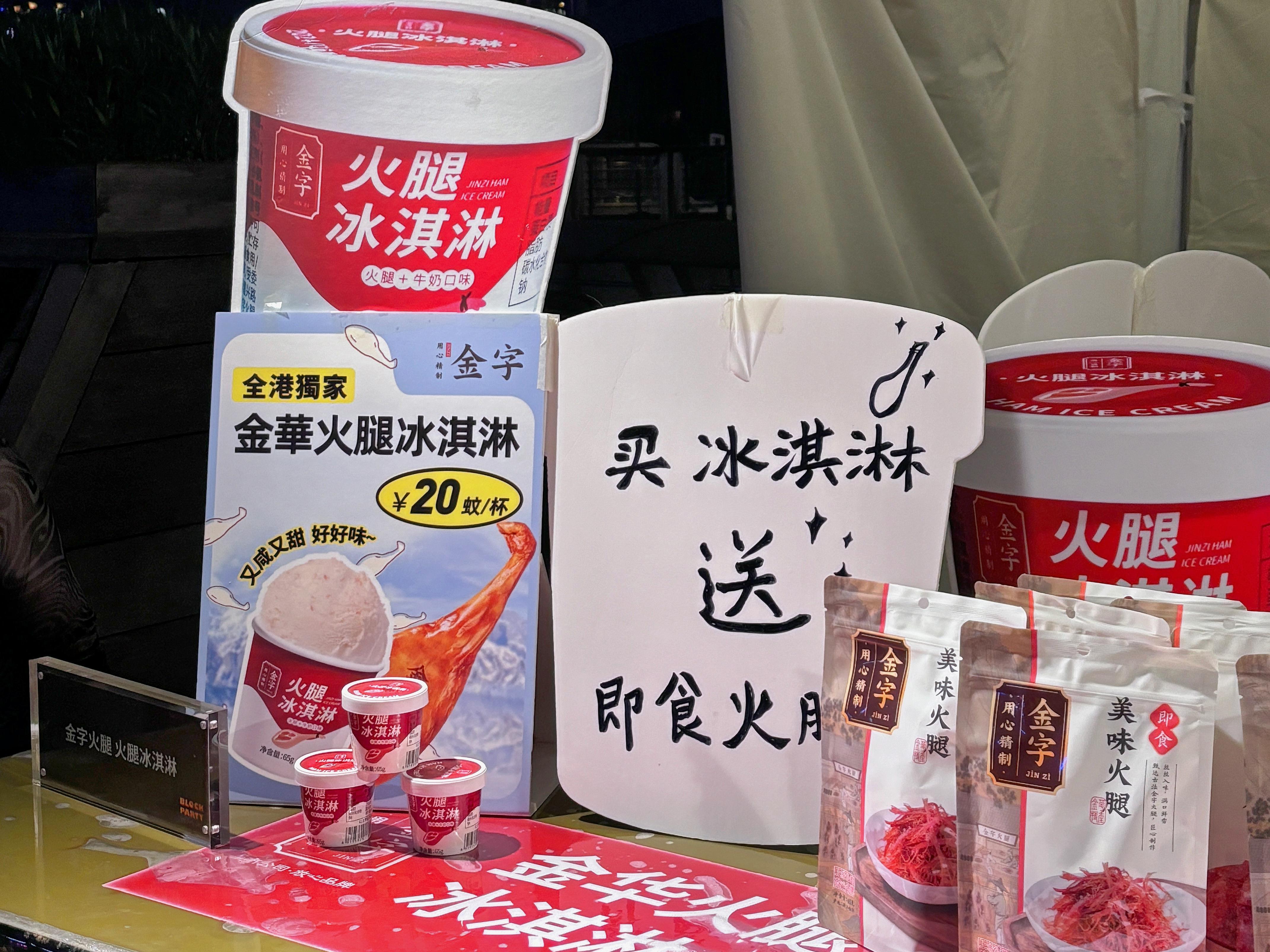“Buy ice cream and get ham free”, ‘Exclusive Jinhua ham ice cream in Hong Kong, sweet and salty, nice flavor, $20 a cup’.
