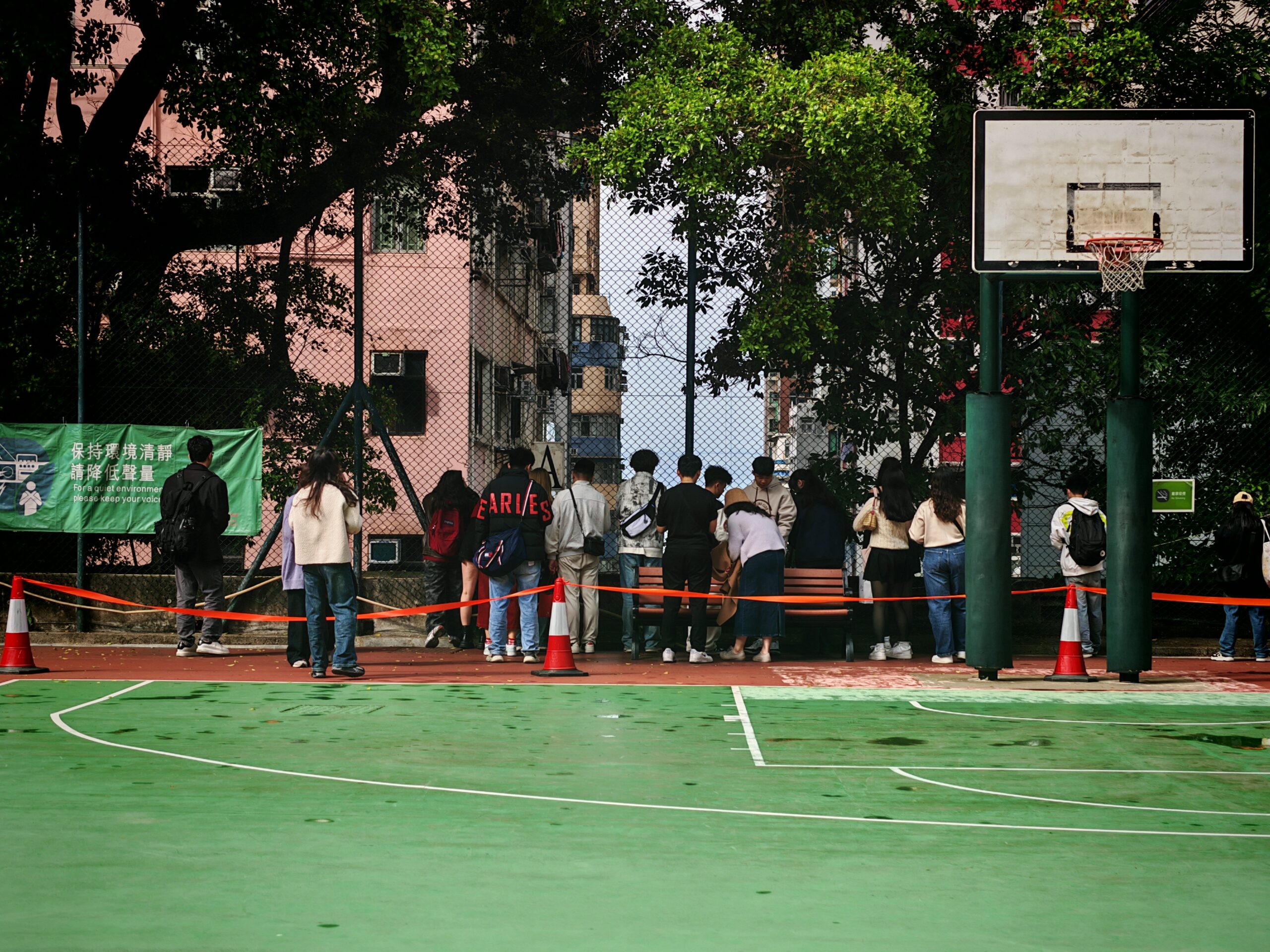 Kennedy Town’s basketball court has become an unexpected attraction for photographers, thanks to the striking view of sea framed by urban architecture. The rising popularity of this location reflects a broader social media trend where visually distinctive, easily accessible spots attract significant attention. The torn fence, likely created to provide an unobstructed shot, reflects how digital platforms can influence public behavior and even alter physical environments.