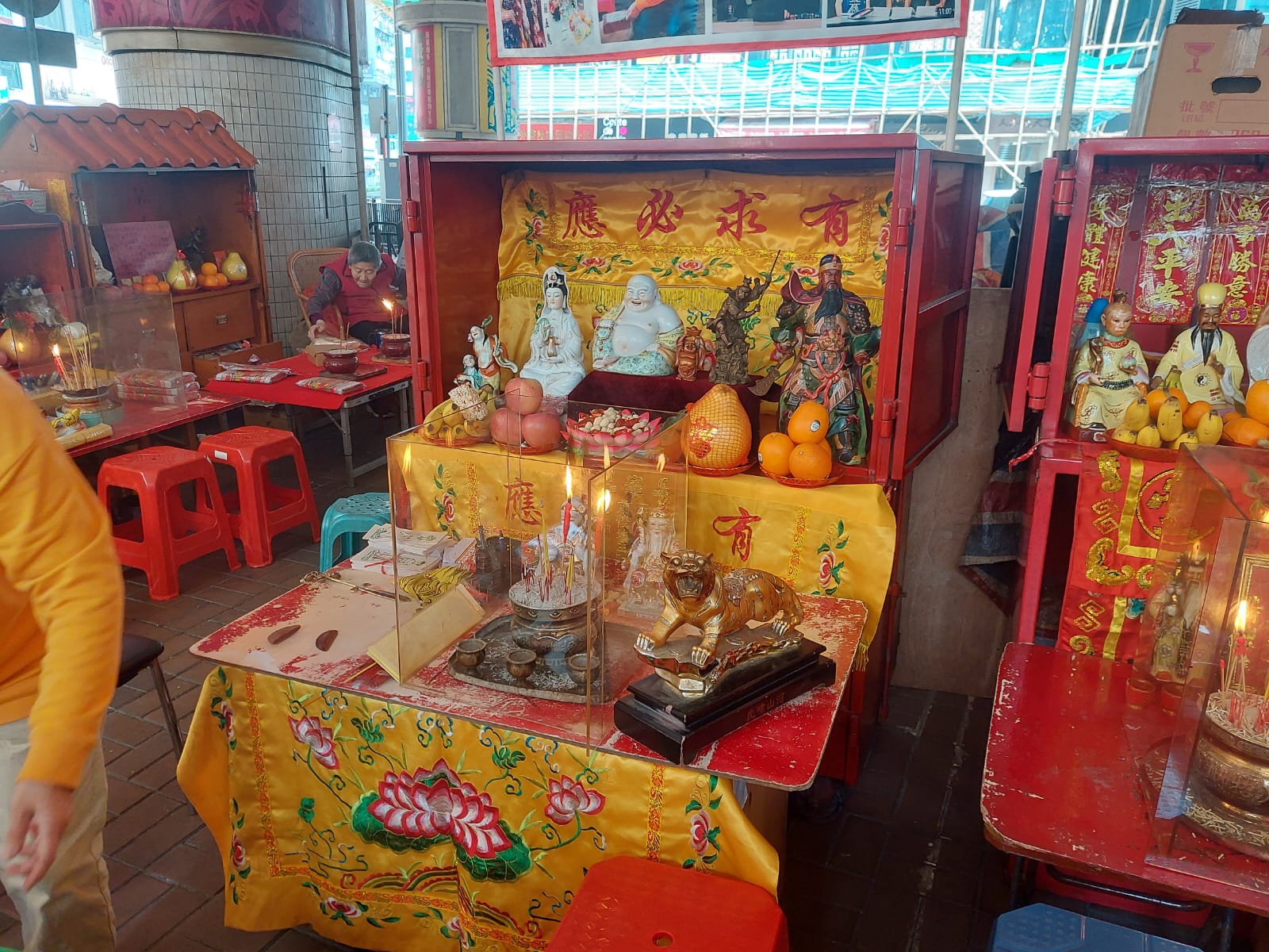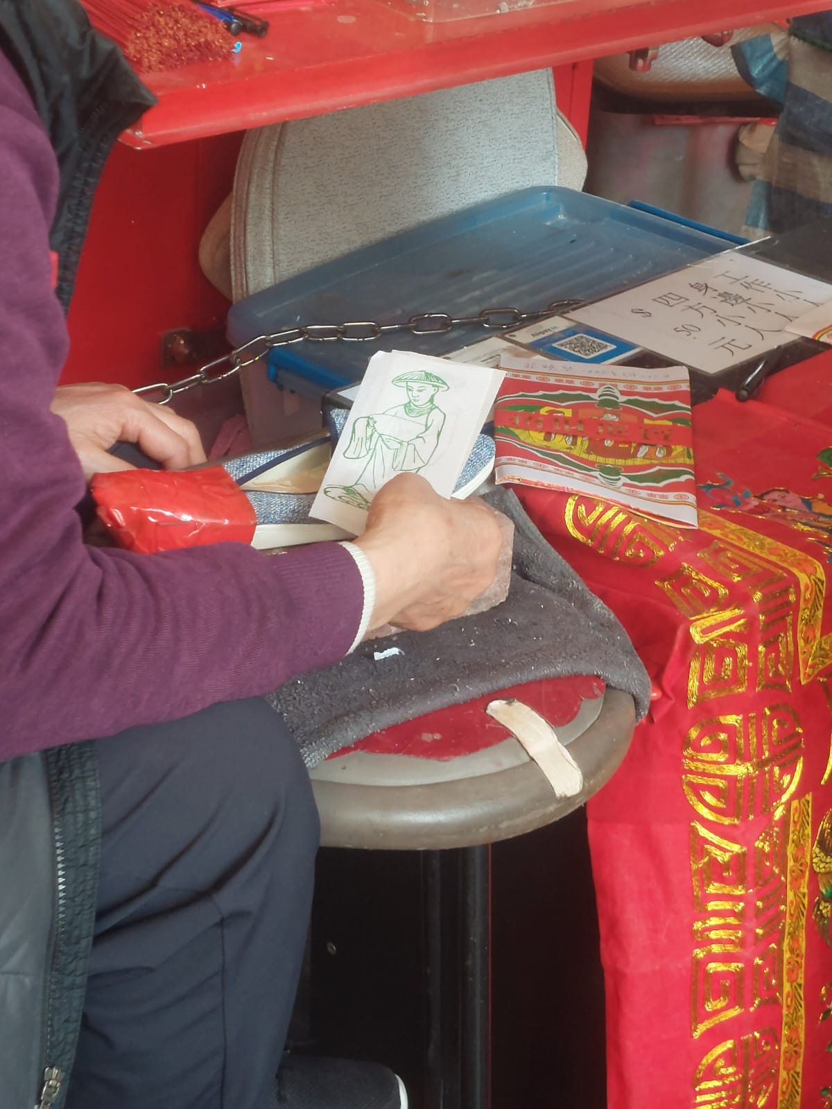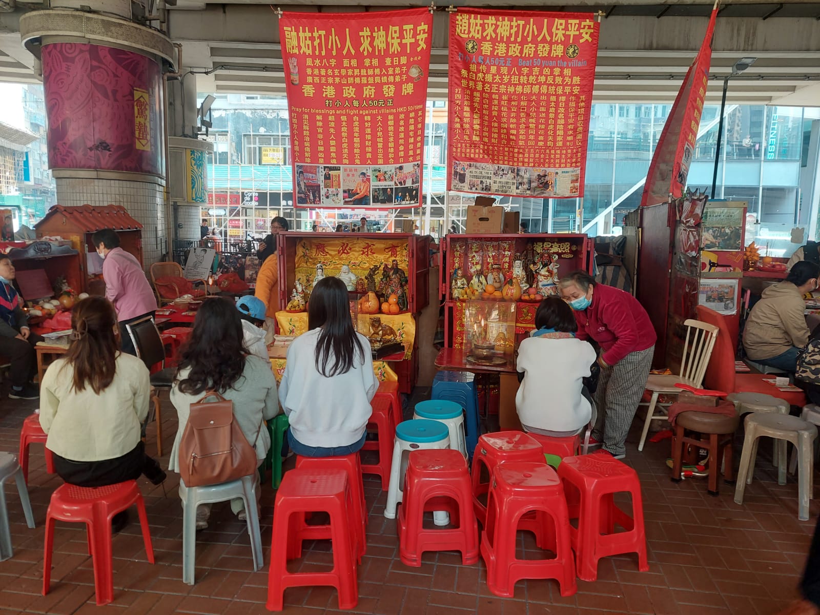 The ritual is often performed by elder ladies, who will use a slipper to slap the ‘villain’ – usually symbolized by a piece of paper printed by a man’s image. By hitting the piece of paper with a slipper, the said bad influence in one’s life will now be cursed. Anyone who has a ‘Villain’ in mind can entrust one of the ladies from the villain-hitting stalls for as little as HK$50.