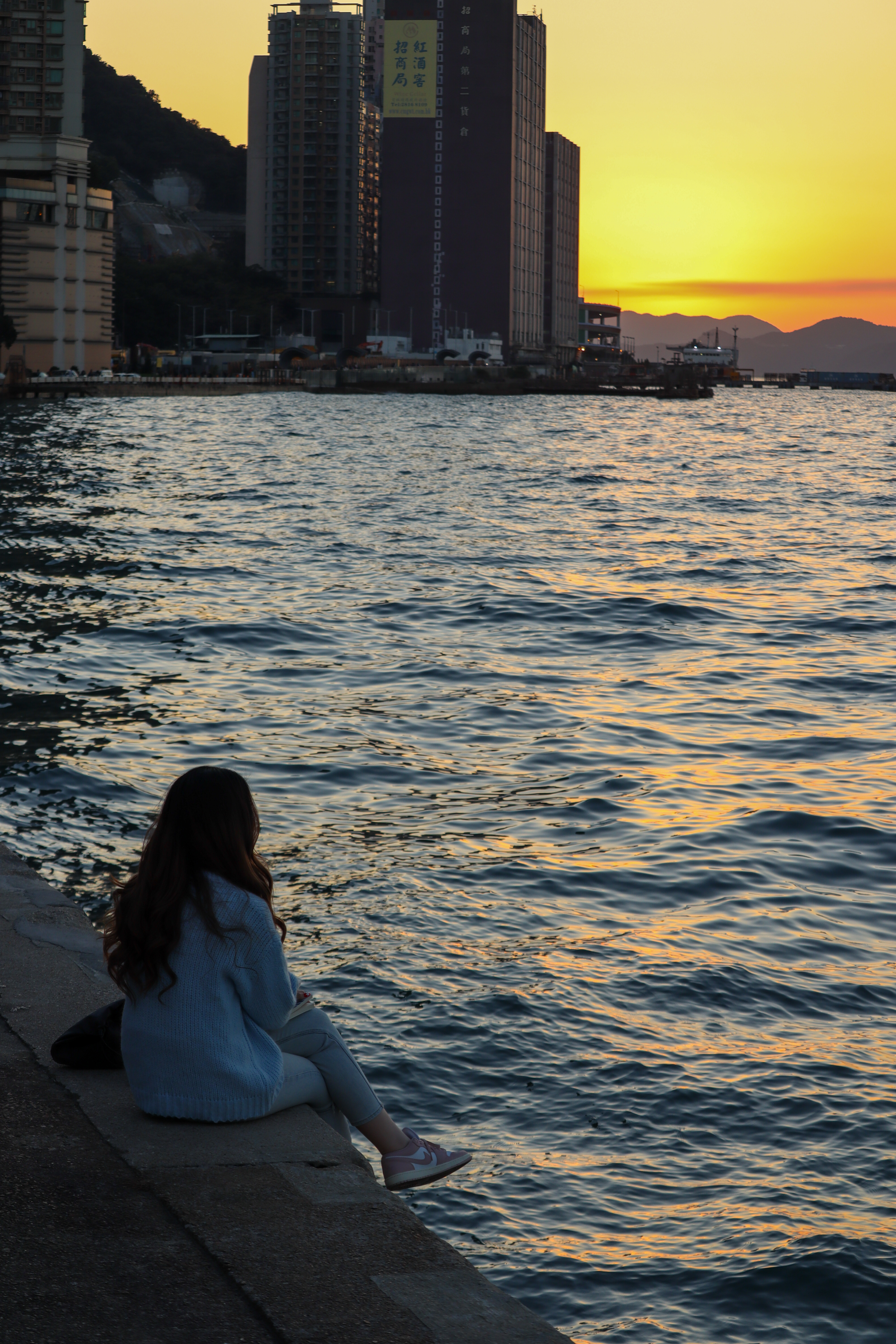 A tourist enjoying the sunset over Victoria Harbour alone on a bench(Photo by Deng Chen/2025)
