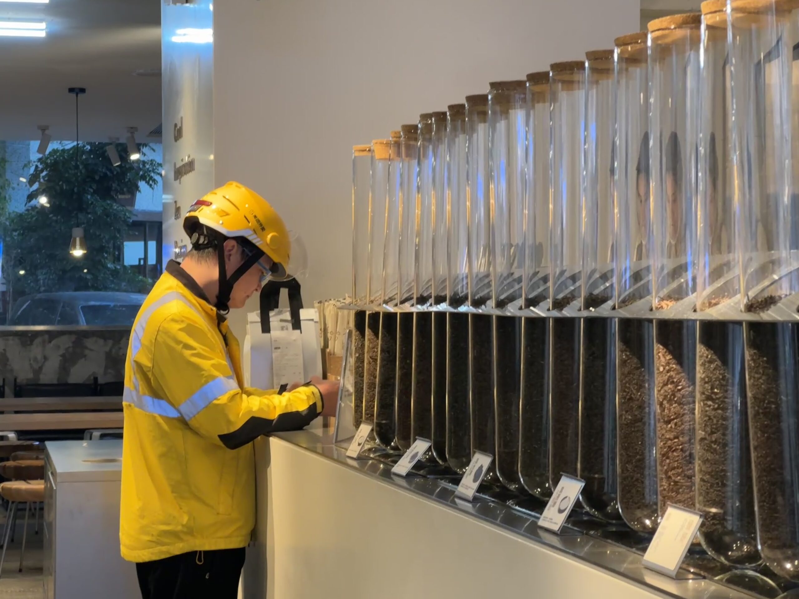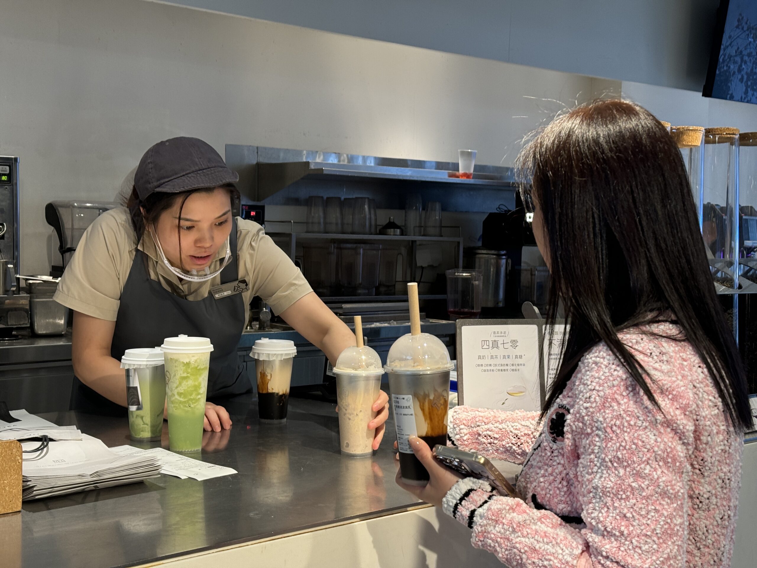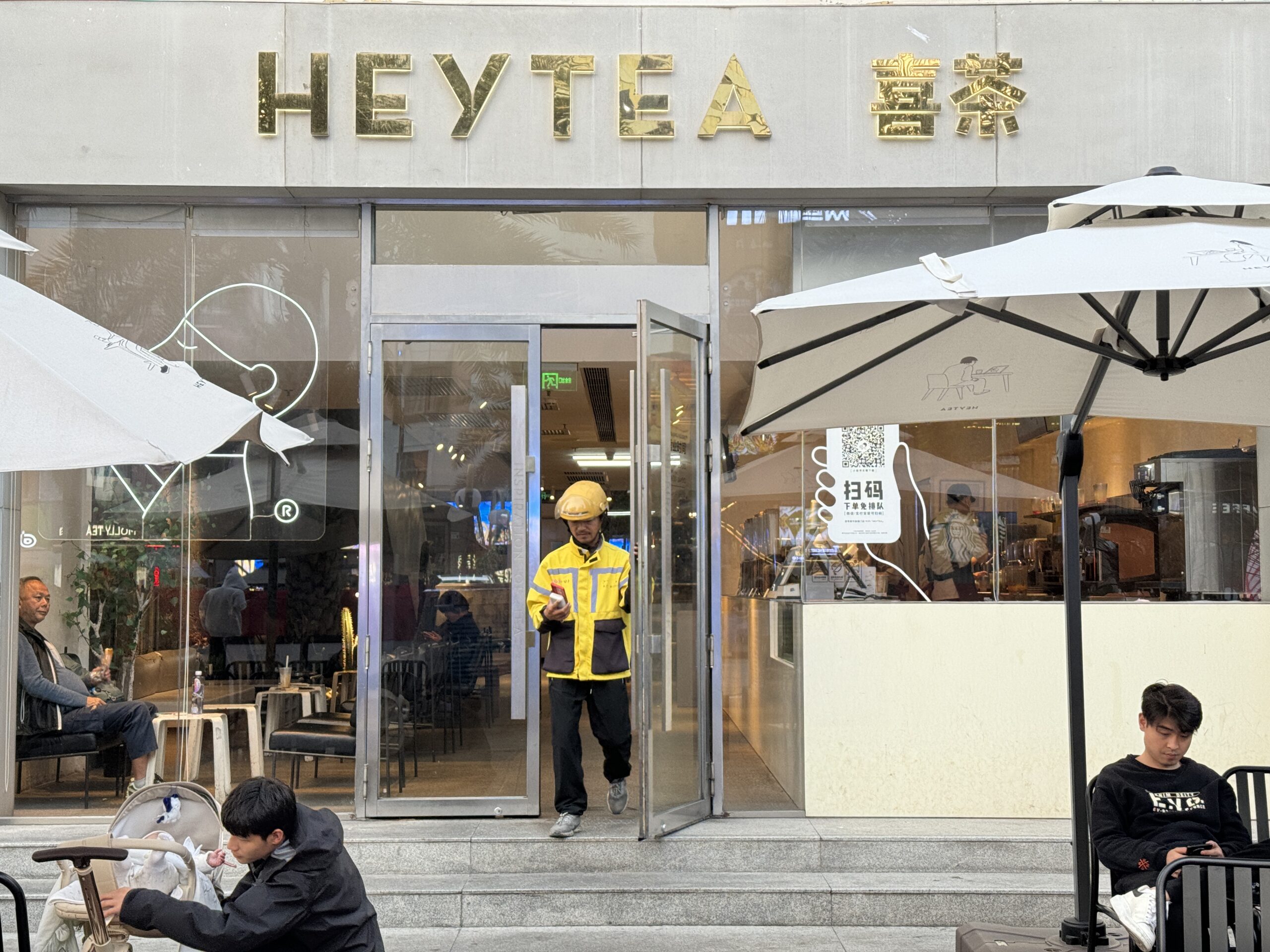 A wide view at the HEY TEA shop in Sea World, Shenzhen demonstrates that a delivery guy just pushed his way out. Photo: Molly