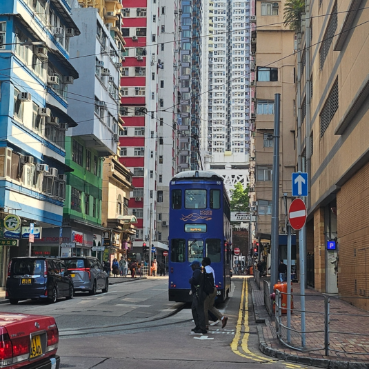 The buildings in Kennedy Town are packed closely together in a variety of colors, and it is also home to Hong Kong’s iconic mode of transportation: the Hong Kong Tramways (Source: Ivy))