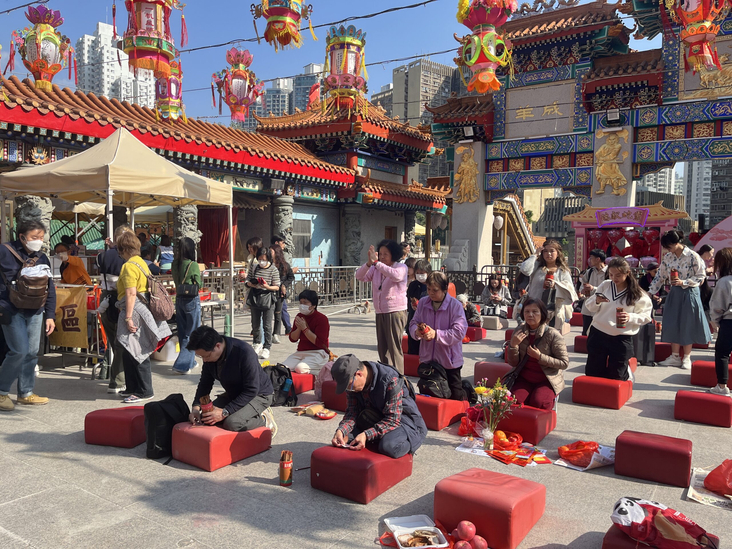 Located in the north of Kowloon, Wong Tai Sin Temple is a famous shrine and tourist attraction in Hong Kong. Millions of people visit to pray for good luck and seek spiritual answers through the practice of kau chim. The Chinese New Year holidays are the busiest time for the temple, as visitors believe that the earlier they offer incense, the better luck they will have in the coming year.