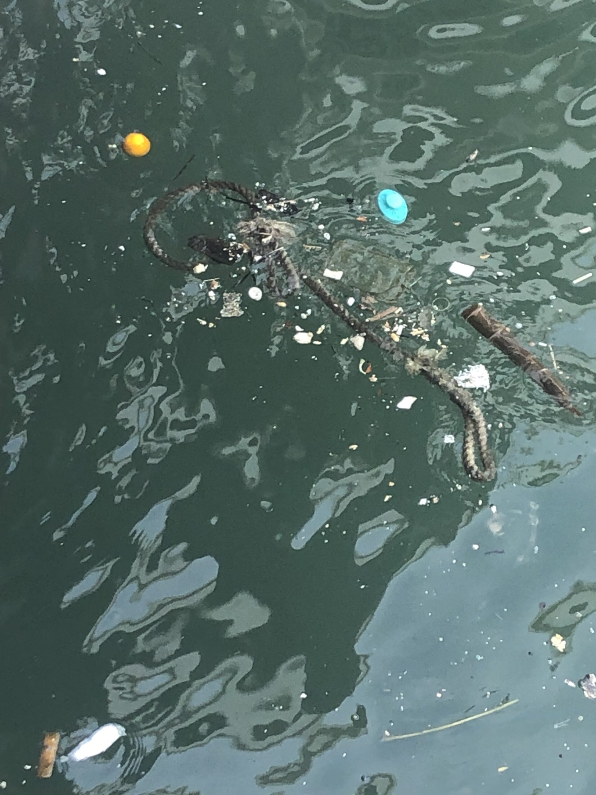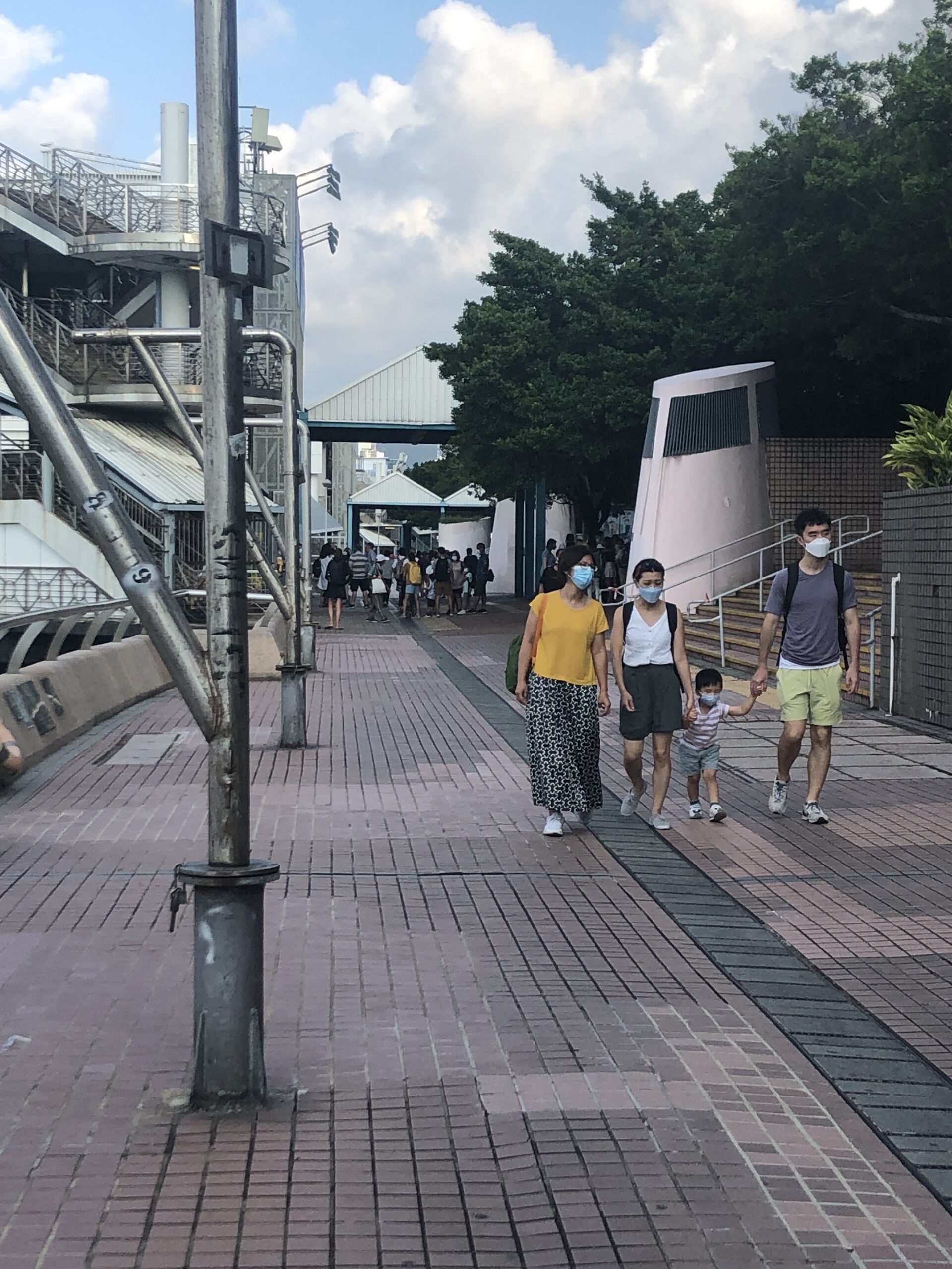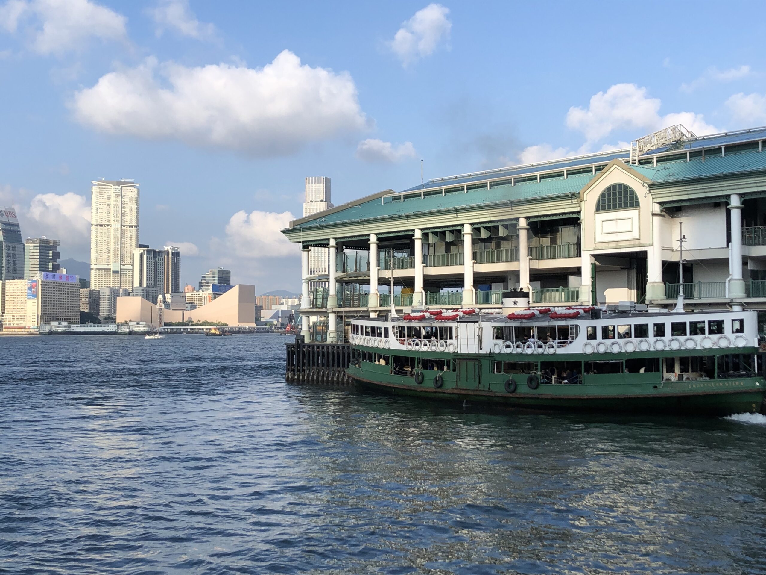 If you start at the western most point of the Central Pier in Hong Kong, you’ll first see a Central Government pier with a fenced off boat and a gated parking lot. As you head east along the piers, you’ll see people lounging on the steps, families walking by with their children and standard-looking ferries with muted colors sitting on the docks. If you look down into the water, you’ll likely see trash floating up, and there will be discarded boxes and barbed wire fence lined up along your view to the boats.