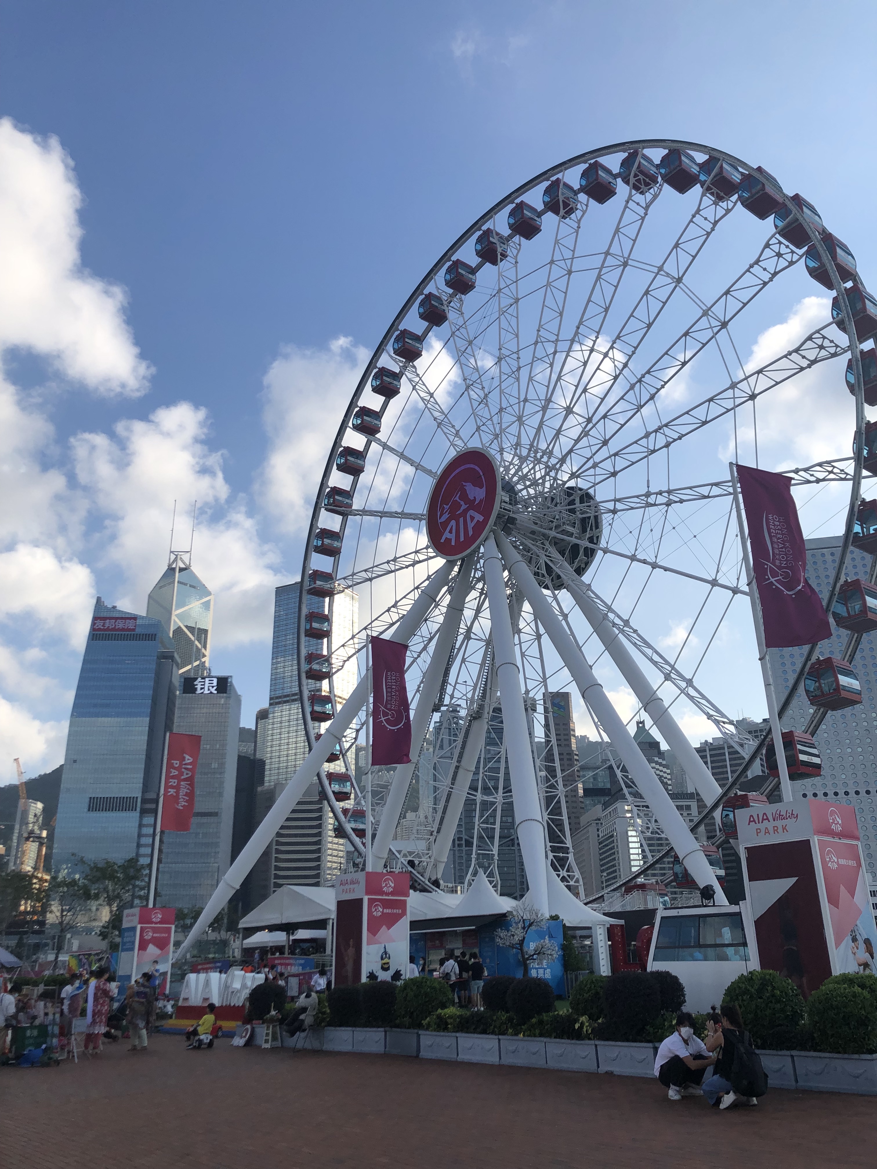 Keep walking towards the Central district and you will see the boats become more colorful and unique. The demographics will likely shift — families may make way for men dressed in business attire or groups of young adults gathering under the ferris wheel silhouetted against the Hong Kong sky line.