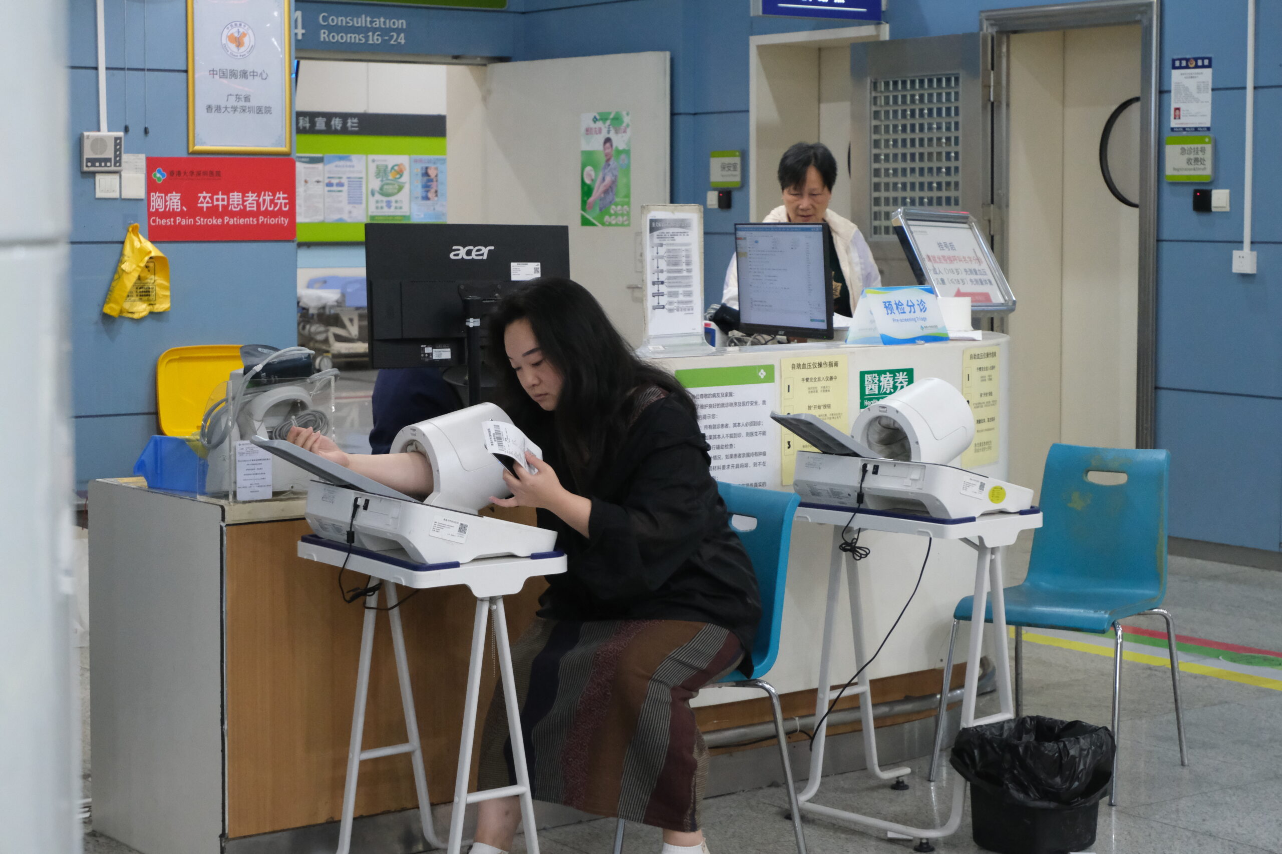 At the entrance of the ultrasound department at Shenzhen People’s Hospital, Kelvin Leung, a retired teacher from Hong Kong, stood anxiously beside a self-service report printer.