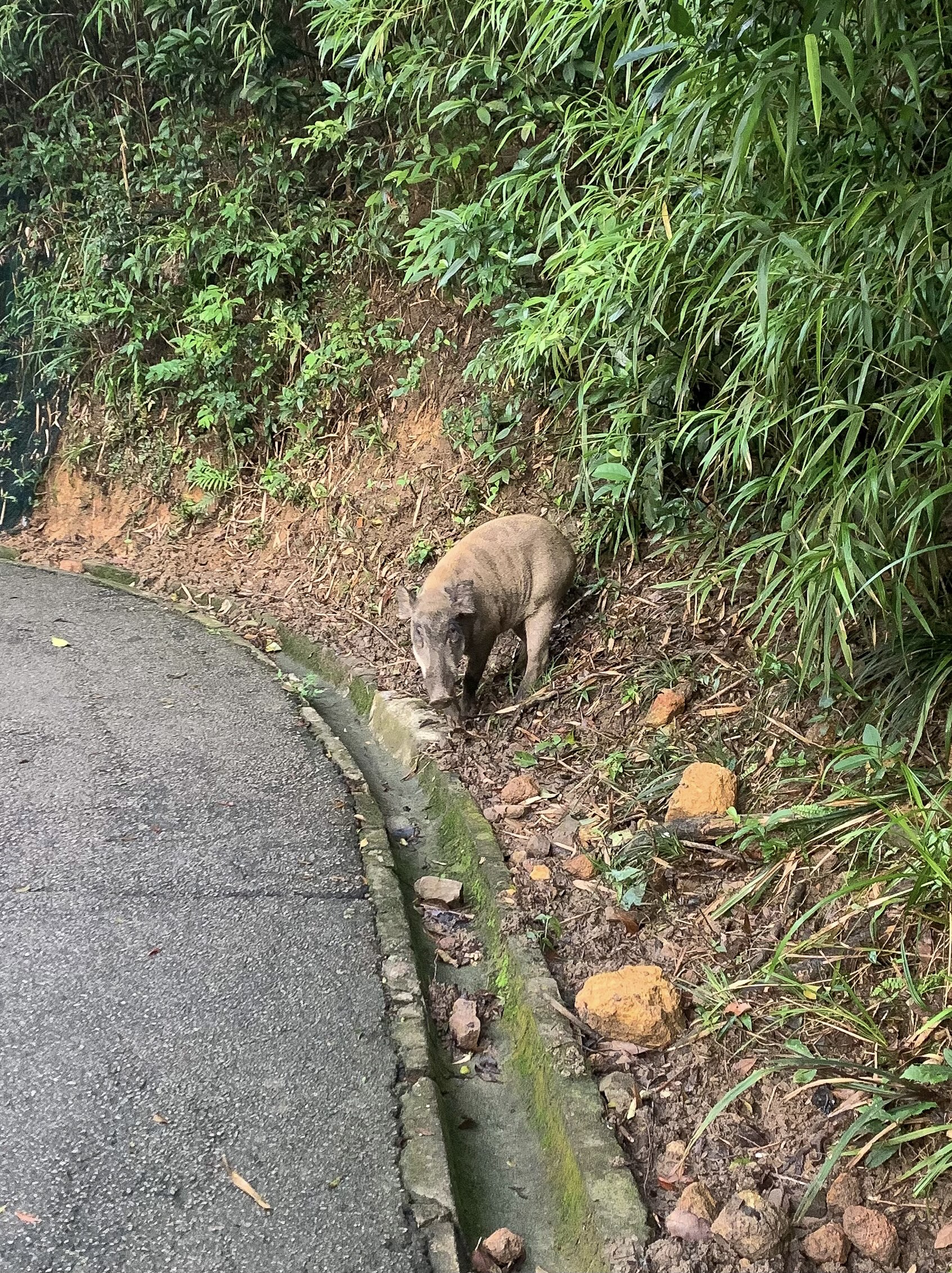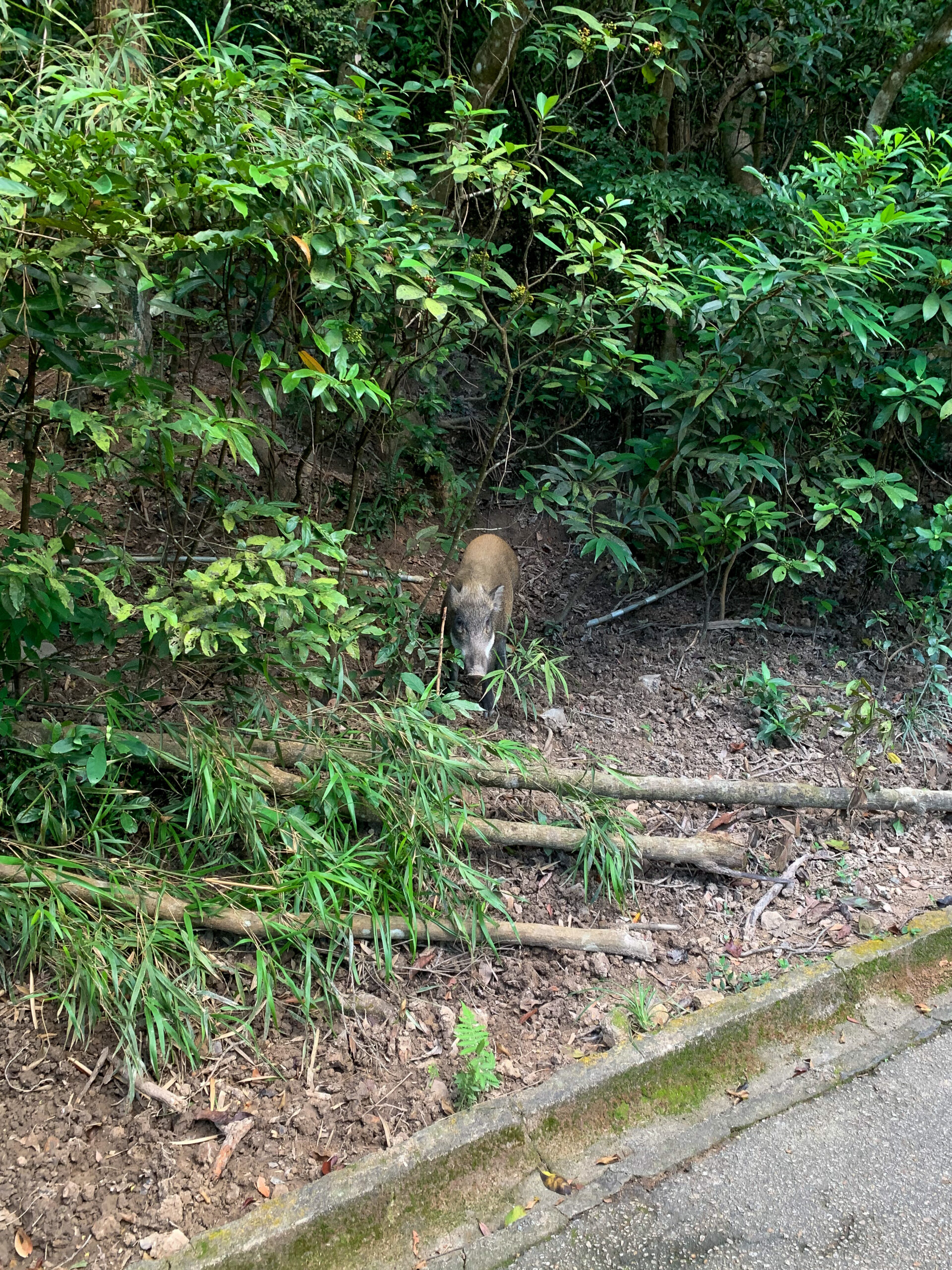 Lung Fu Shan Country Park–which translates into Dragon Tiger Mountain–although has no dragons or tigers, is the home to a family of wild boars who very often walk down onto the main trail and pose for selfies unfazed by us hikers.